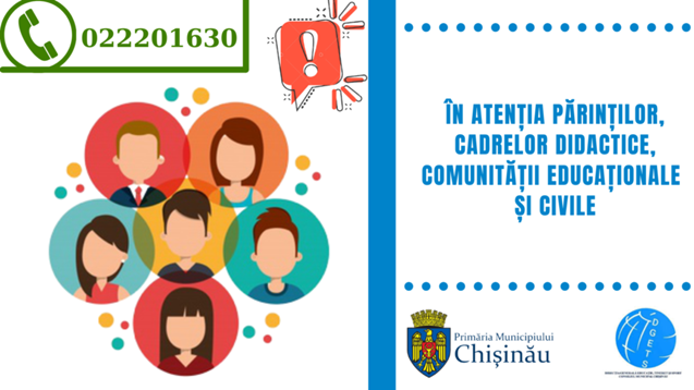 Direcția Generală Educație, Tineret și Sport a Consiliului municipal Chișinău solicită informarea repetată a angajaților instituțiilor de învățământ general și a comunității de părinți, a elevilor cu ordinul nominalizat.