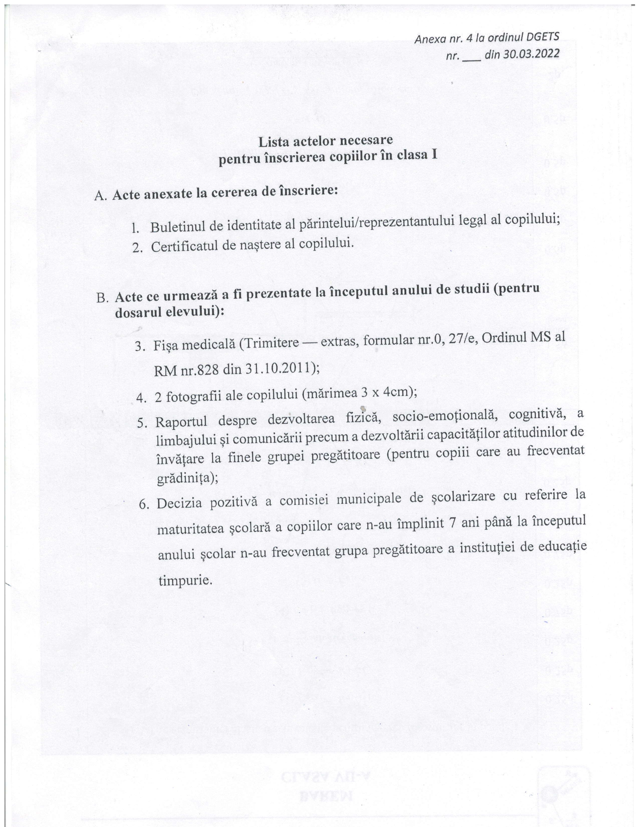 Lista actelor necesare pentru înscrierea copiilor în clasa I
