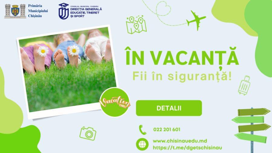 În acest context, Direcția Generală Educație, Tineret și Sport a Primăriei Chișinău propune câteva reguli și sfaturi pentru a asigura o vacanță sigură și plină de bucurie: