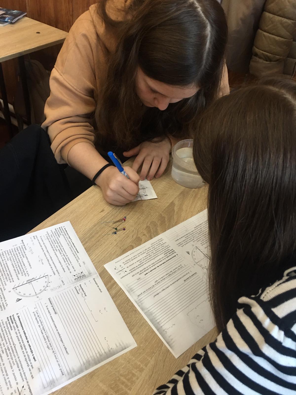 Iar elevii din IP Gimnaziul nr.42, clasa a IX-a, alături de profesoara lor Cobzac Tatiana au avut ocazia să dezvolte competențe de lucru în echipă, de studiere și analiză, de colaborare, în cadrul lecției de fizică, la efectuarea lucrării de laborator: