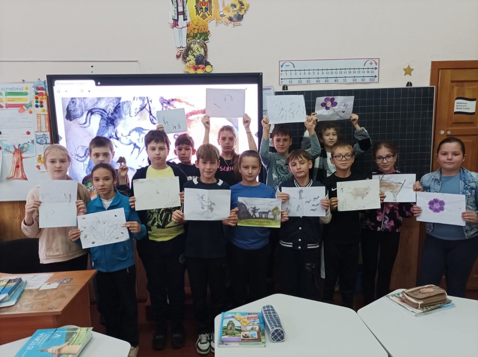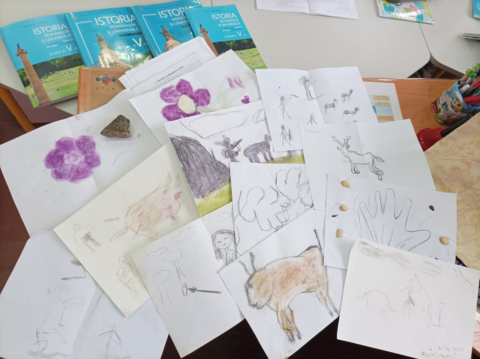 La ora de istorie, sala de clasă s-a transformat într-o adevărată peșteră a timpului! Elevii clasei a V-a au explorat fascinanta lume a artei preistorice, descoperind cum primele comunități umane își exprimau gândurile și emoțiile prin desene realizate cu culori naturale.